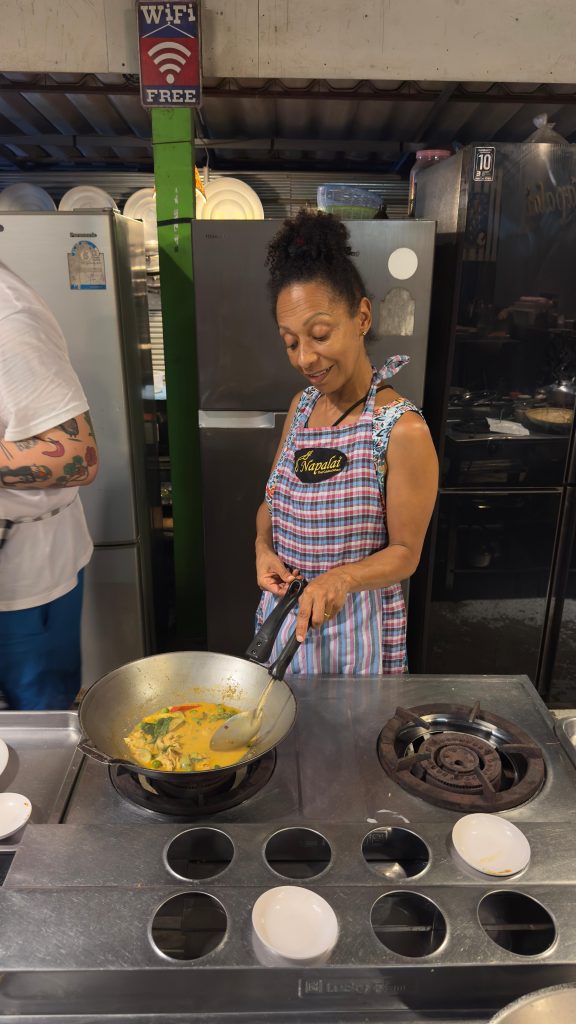 Eigentlich verbringe ich meinen Geburtstag nicht gerne in der Küche, aber diesmal war genau das mein Wunsch: ein thailändischer Kochkurs zusammen mit meinem Mann. Zuerst war er wenig begeistert – aber hey: mein Geburtstag, meine Küchenparty. Am Ende hatte er mindestens genauso viel Spaß wie ich, und wir haben uns mit viel Spaß durch zwölf Gerichte gekocht und gefuttert. Bonny zeigte uns dabei jede Menge Kniffe und erklärte geduldig die kleinen Besonderheiten der thailändischen Küche.